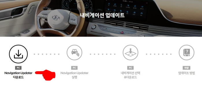 지도 업데이트를 하기 위해서는 내비게이션 전용 프로그램을 다운로드가 필요하다. 왼쪽에 있는 다운로드 버튼을 선택 후 자신의 컴퓨터 사양에 맞는 프로그램을 설치하자.