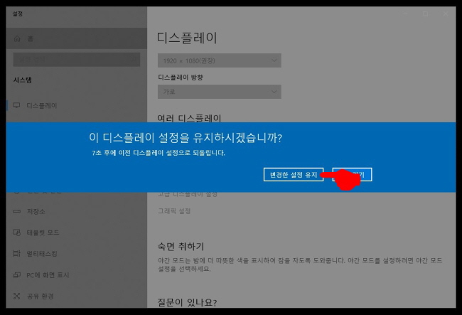 바탕화면에서 마우스 우클릭 → 디스플레이설정 진입