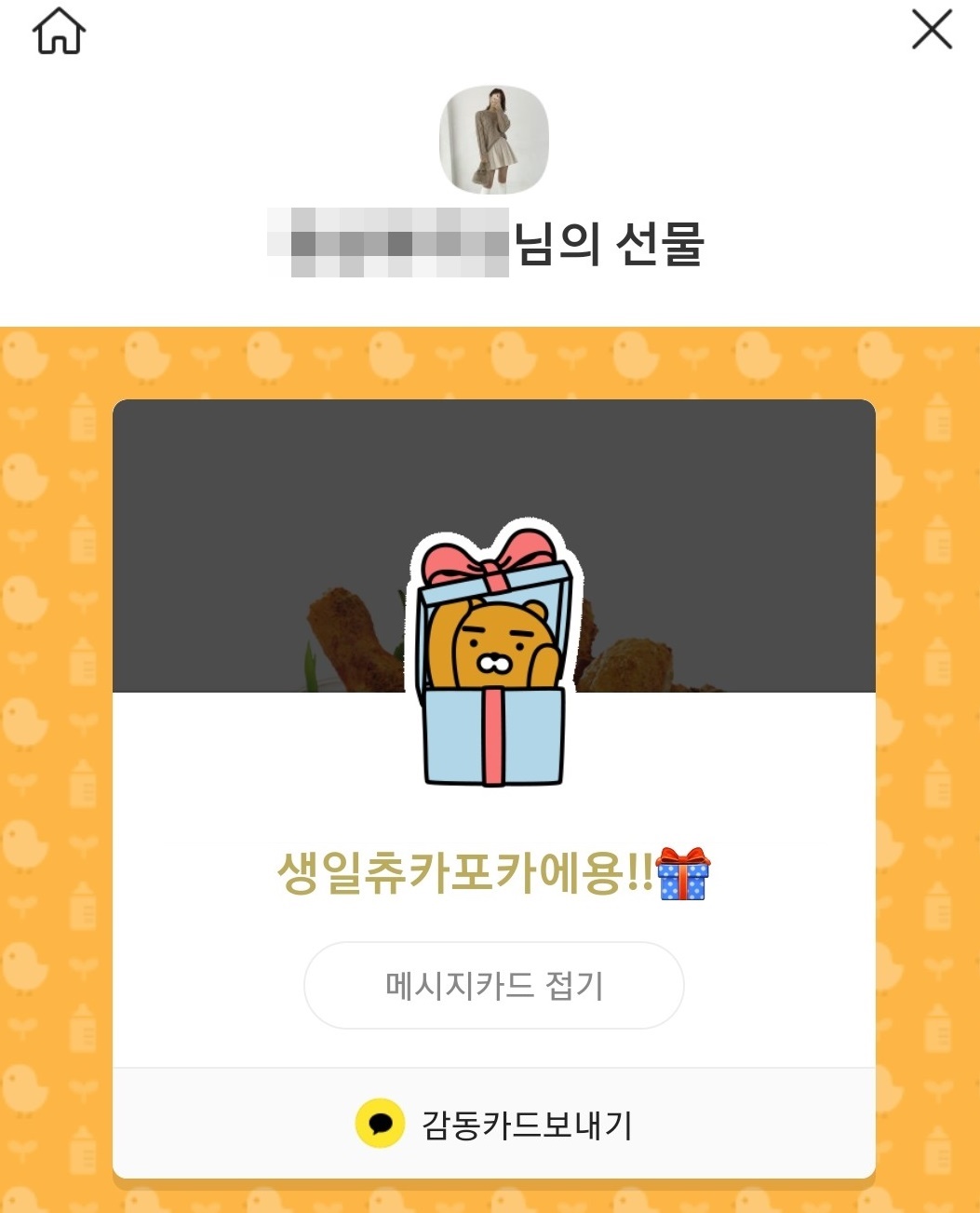 카카오톡에 접속을 하니 아니나 다를까 라이언이 꼬깔모자를 쓰고 축하해주는 것을 알 수 있었다. 덕분에 지인들에게 선물도 받아서 기분이 좋지만 결국 이 또한 나중에 갚아야 하다는 점은 분명하다.