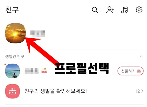 이렇게 카카오톡 메인화면에 생일이 안내되다 보니 간혹 부담스러운 경우가 있다. 카카오톡 생일 알림 비공개 설정을 하기 위해서는 자신의 프로필을 누르고 들어가서 설정이 가능하다.