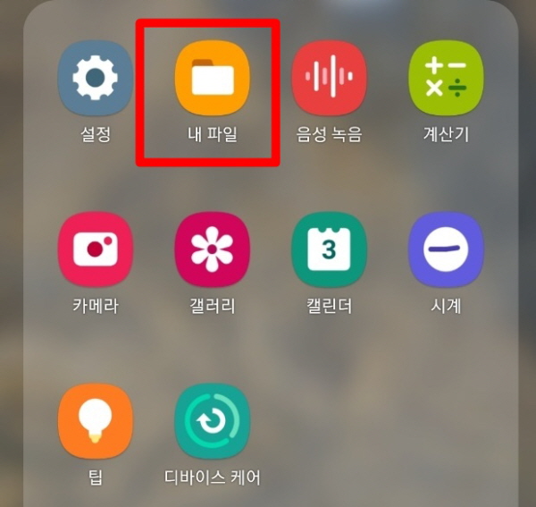 자신의 휴대폰에 있는 내 파일 폴더로 진입해보자. 일반적으로 휴대폰에 기본적으로 설치되어 있는 폴더이기 때문에 찾기가 어렵지는 않다.