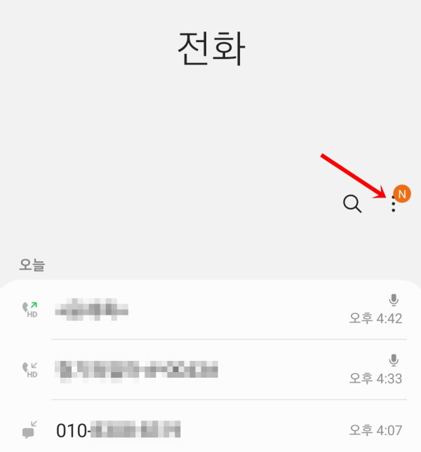 통화목록을 열고 우측 상단에 있는 점 세개 버튼을 누른다.