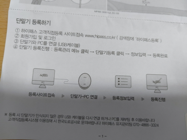 하이패스 단말기를 받았다면 제일 먼저 할 일이 바로 단말기를 등록하는 것이다. 단말기와 함께 동봉된 설명서에는 단말기 등록방법이 자세하게 설명되어 있다.