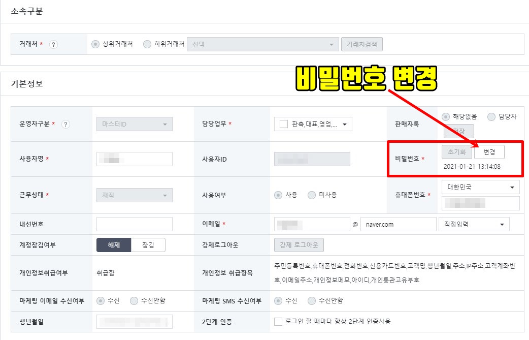 오픈마켓 롯데온 판매자계정 마스터 비번 변경방법