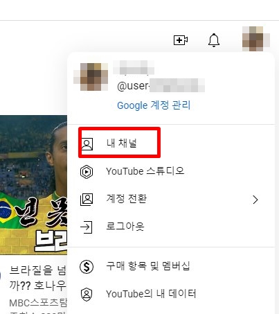 기존에 채널을 만들어 놨던 사람들의경우 내 채널이라고 표시된 항목을 선택하면 된다. 만약 채널을 개설한 적이 없다면 채널 만들기를 통해서 유튜브 채널을 생성할 수 있다.